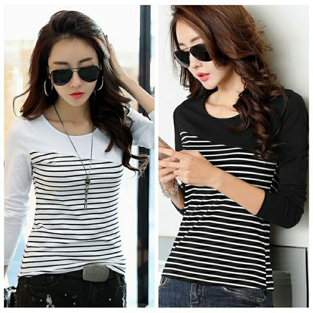 Ladies fashion ada jumbo tshirt salur / baju kaos wanita lengan panjang.